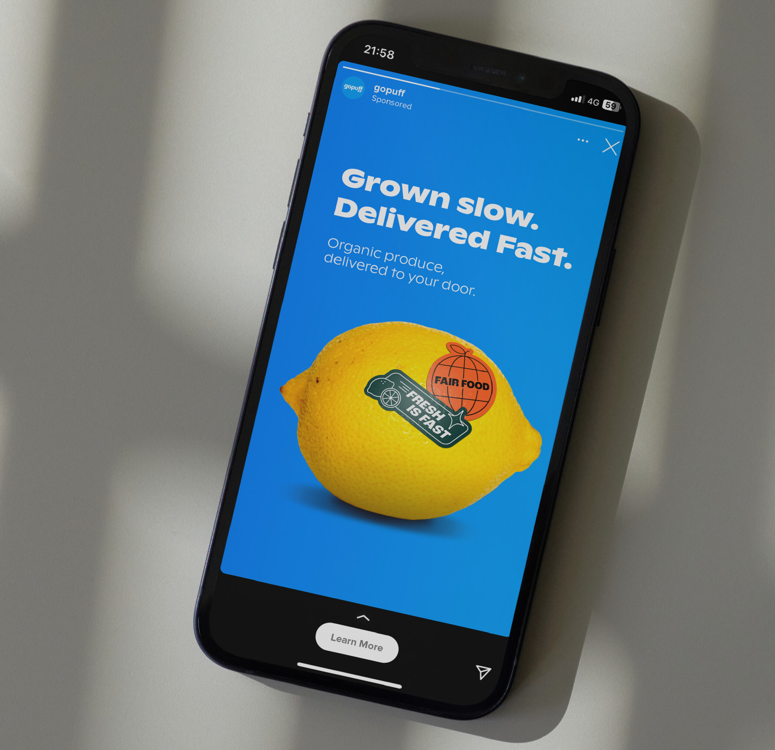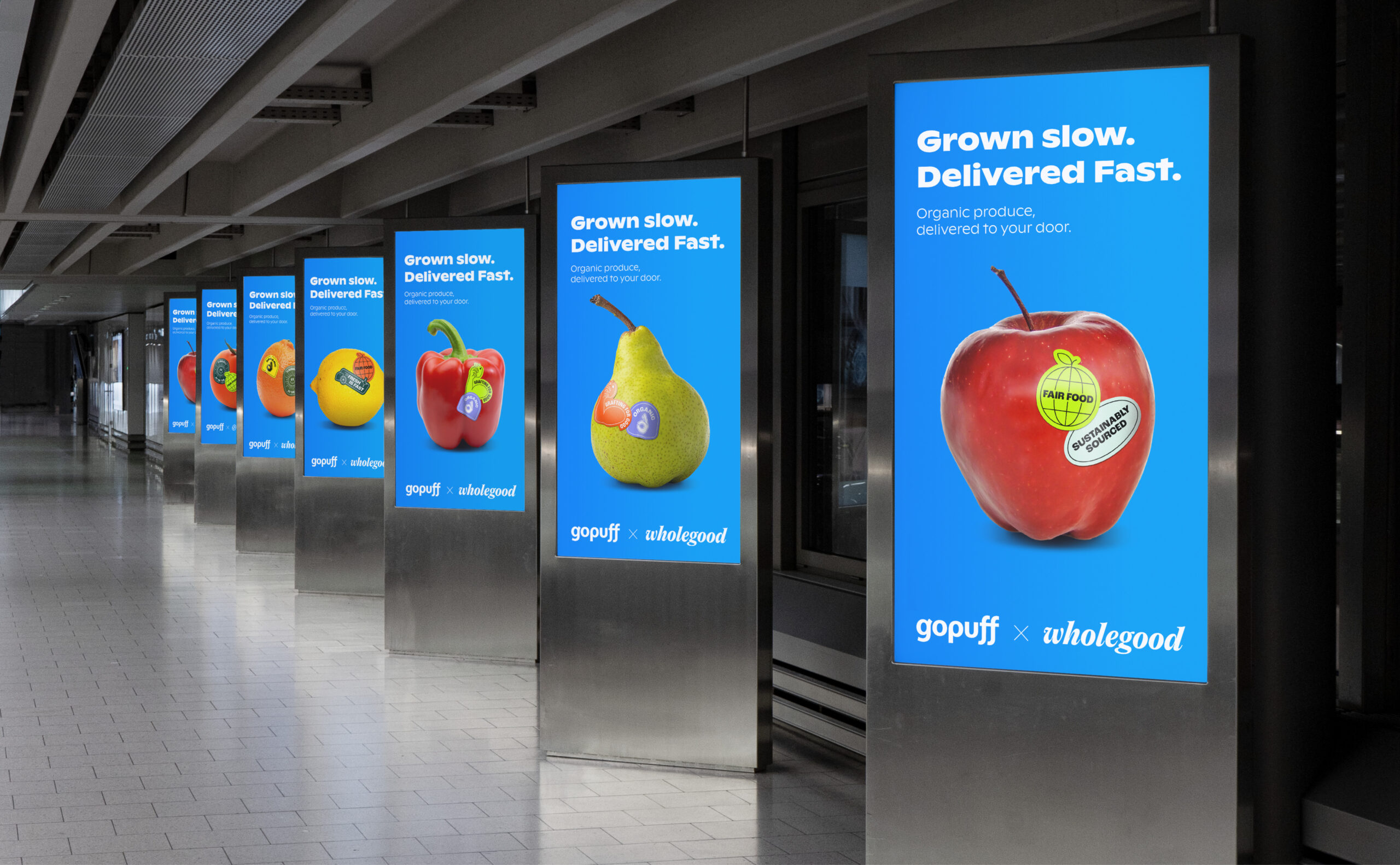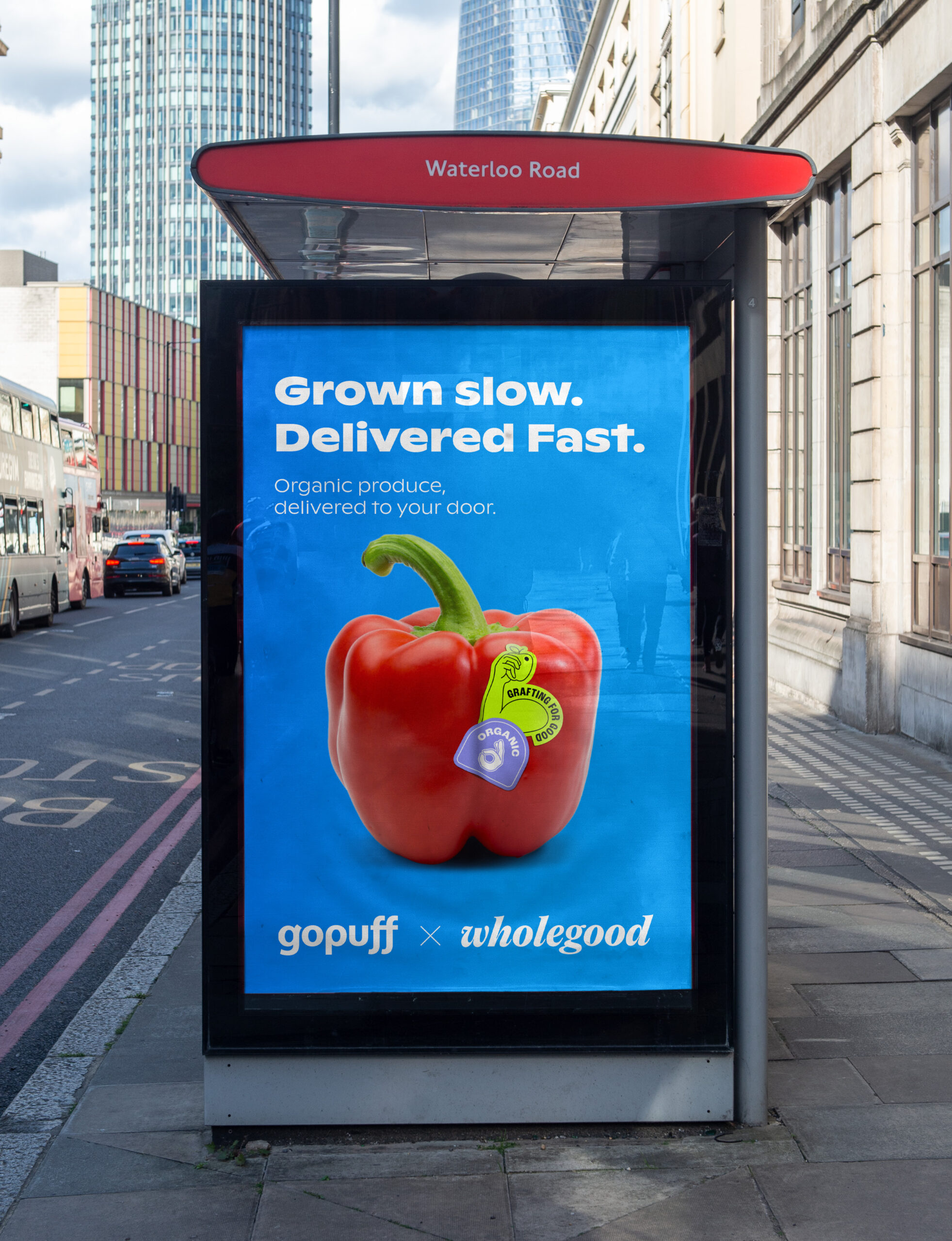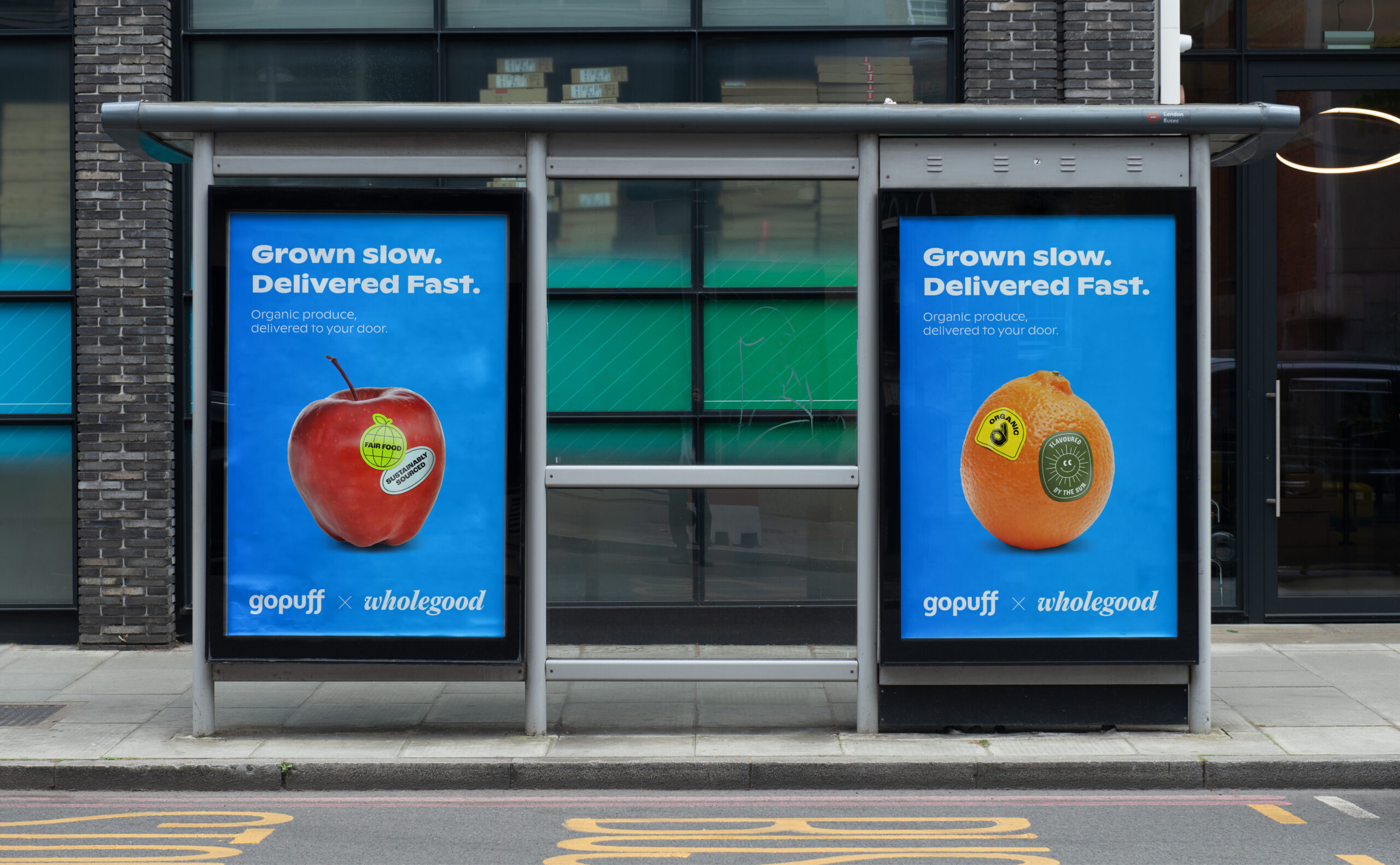 In celebration of Wholegood fresh produce being available for delivery in minutes by Gopuff, a campaign was launched online and across London.